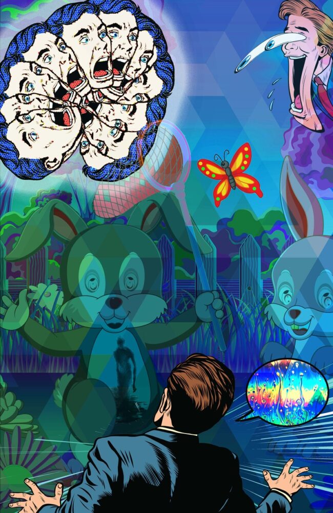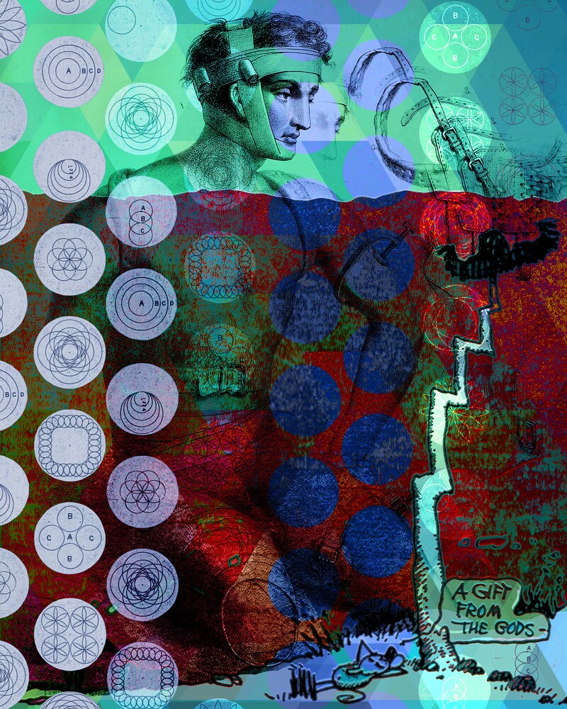 Eventually, I began to create digital collages untethered to clear referents, neither satire nor homage. While I stopped concerning myself with whether anyone could easily interpret my work, these pieces were also the most influenced by my experience of the hospital itself. Ambiguity, simultaneity, fragility, and the tension between pattern and chaos are all recurring elements. This is how I think of Denver Health: a place daily bursting with the full range of our human condition, countervailing entropy, held together by the tireless labor of devoted staff. I made this work for these people, and doing so has been a real privilege.